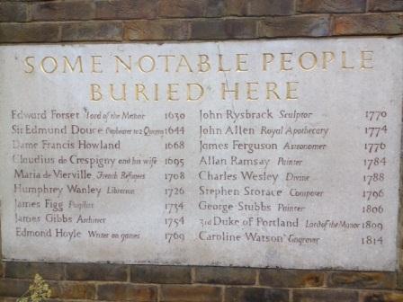 Claudius Champion de Crespigny (1620-1695) was a Huguenot and officer in the French army. In 1687 he and his wife Maria de Vierville (also buried here) fled their chateau at Vierville in France for England after the revocation of the Edict of Nantes. They found sanctuary in London and De Crespigny became a Colonel in the English army. The Champion de Crespigny family held land in Camberwell. They were a Norman family who fought in First Crusades under St Louis and became hereditary champion of Dukes of Brittany and Normandy.