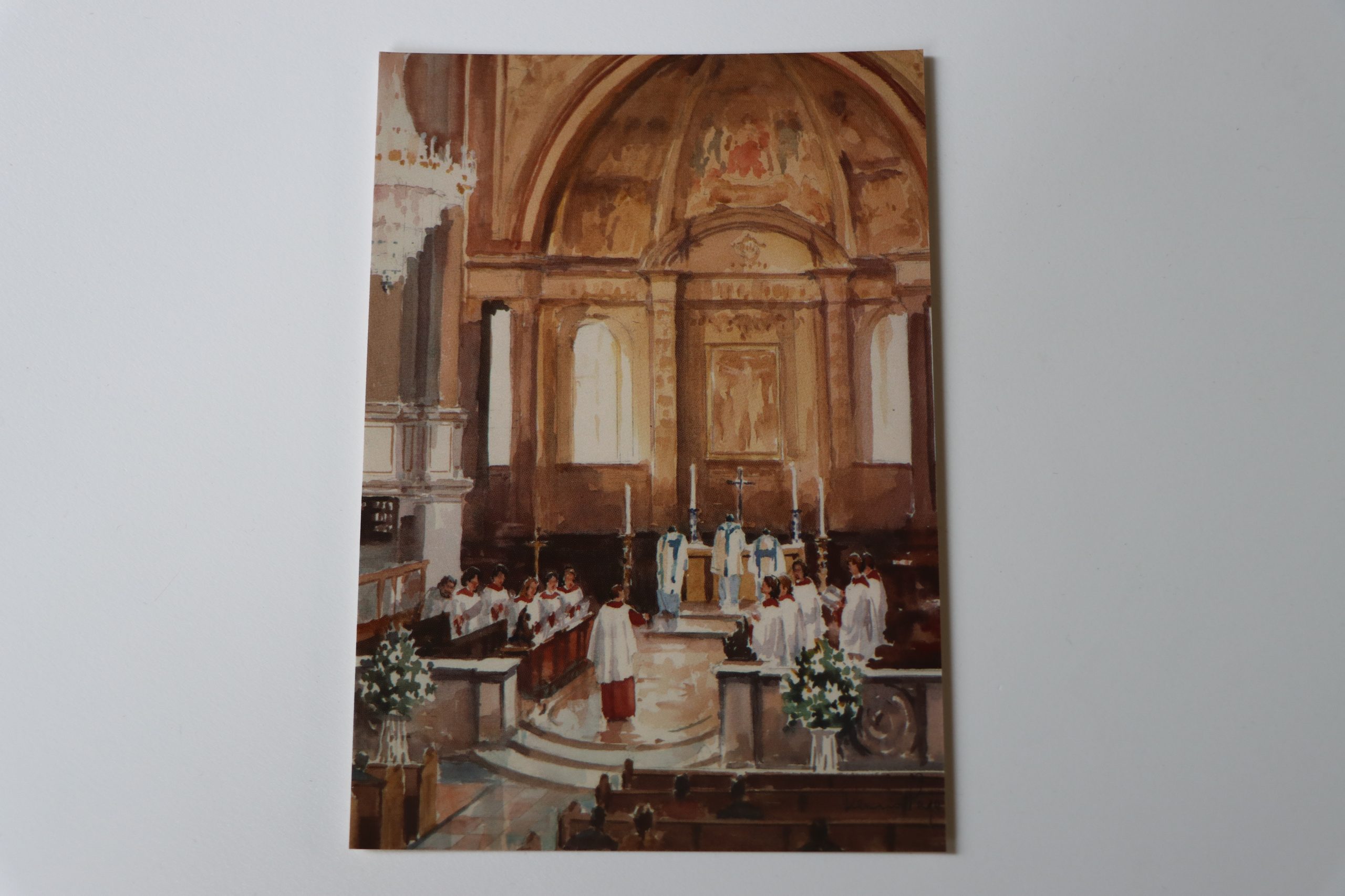 A large print of Denis Page's watercolour painting of St Marylebone. Printed on silk vinyl and is unframed with white borders.